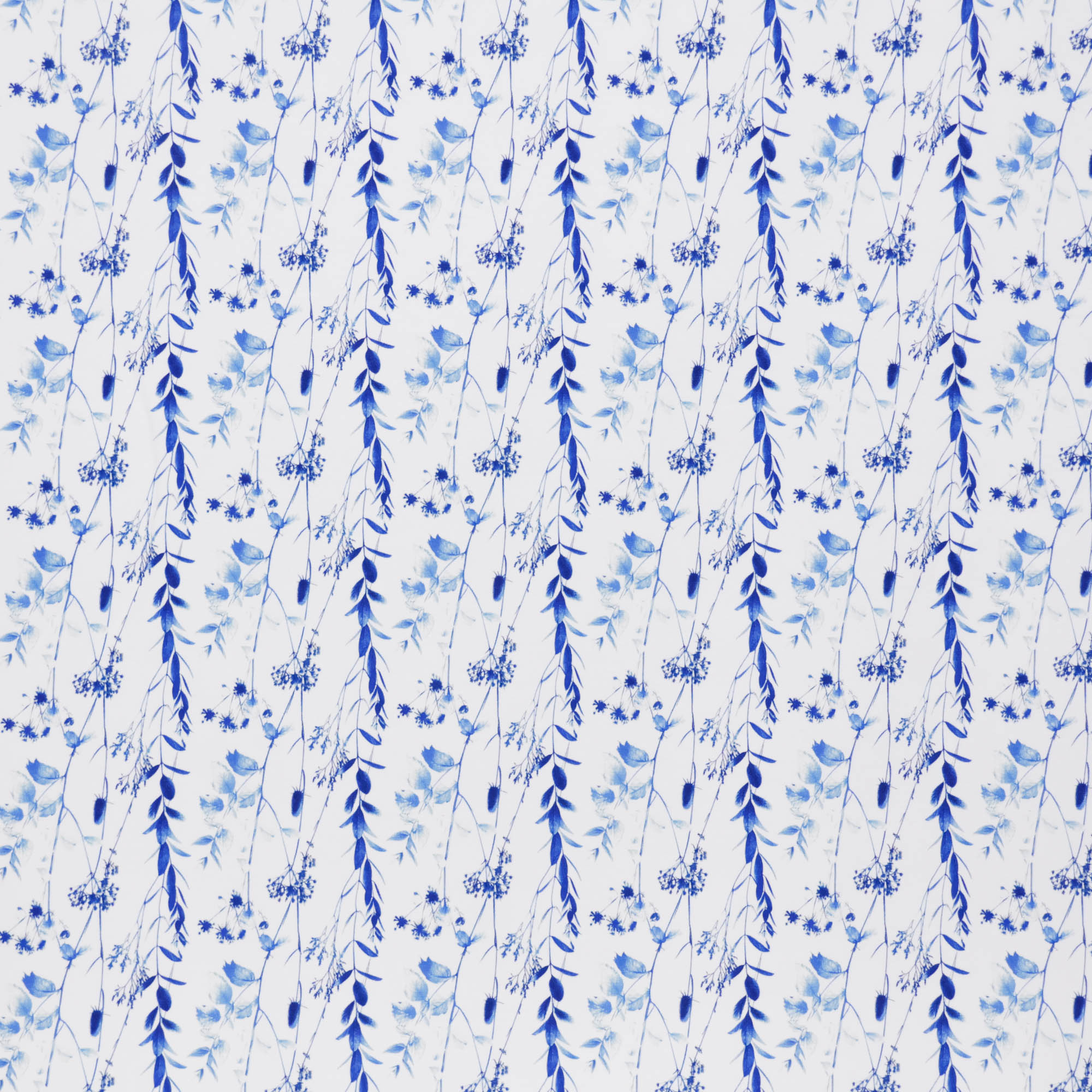 French terry wit met blauwe bloemetjes