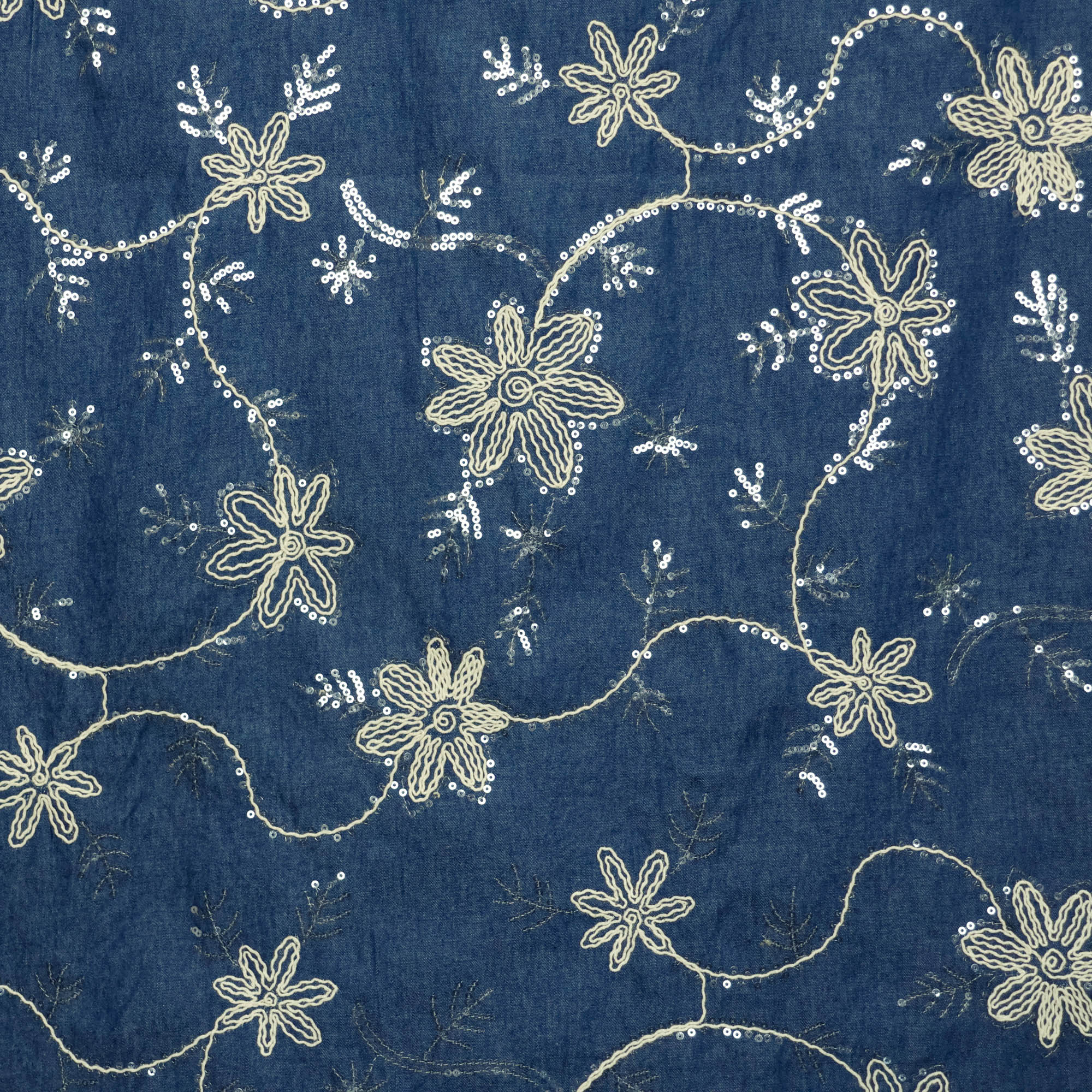 New!Broderie lichtblauw met bloemen