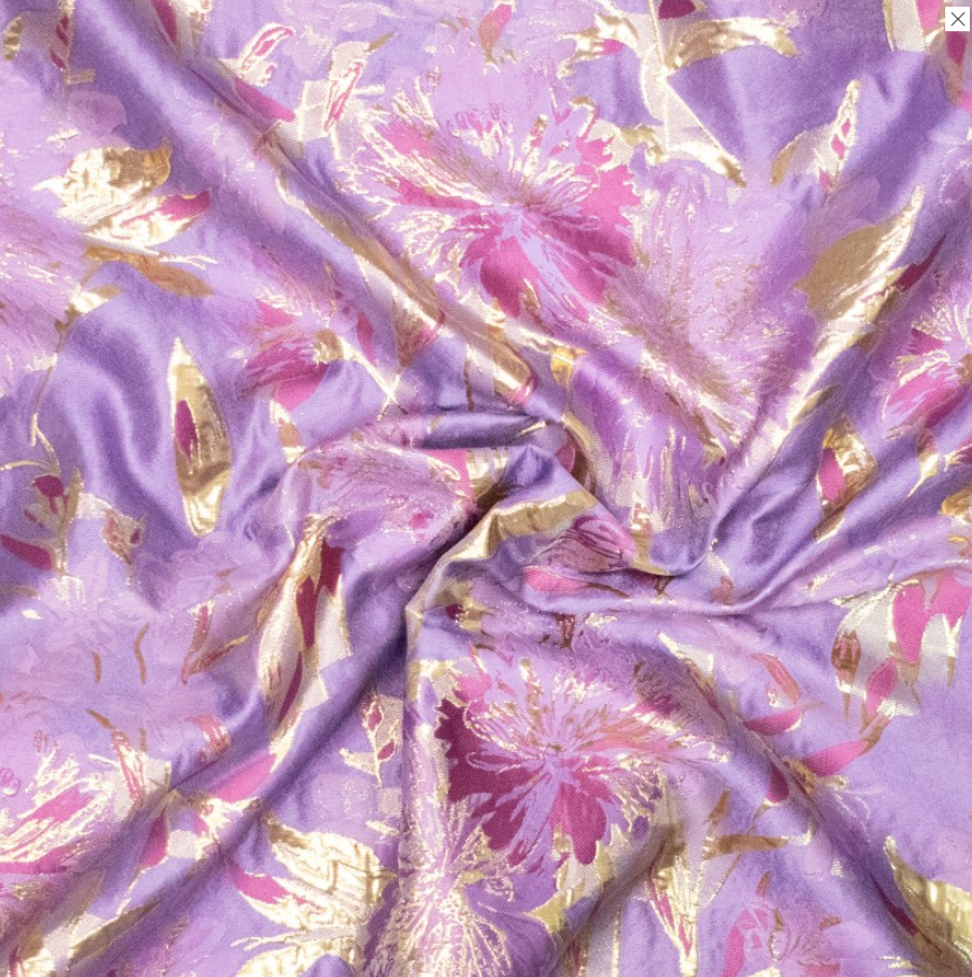 Jacquard paars met roze/gouden bloemen