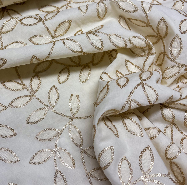 Katoen gebroken wit met bronze pailletten blaadjes