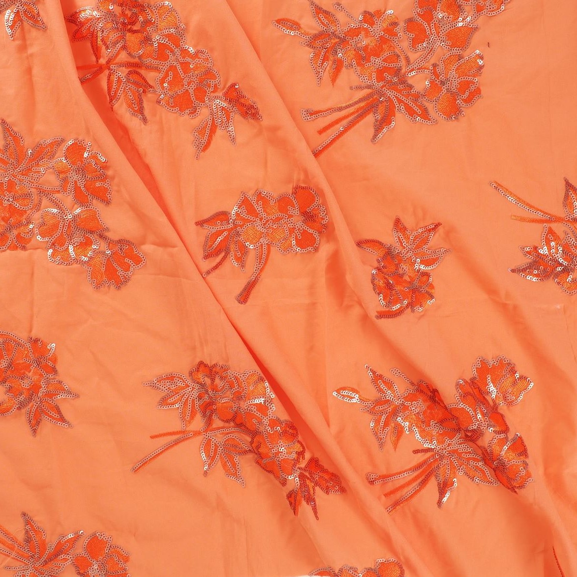Katoen oranje geborduurd met pailletten bloemen - Lorré