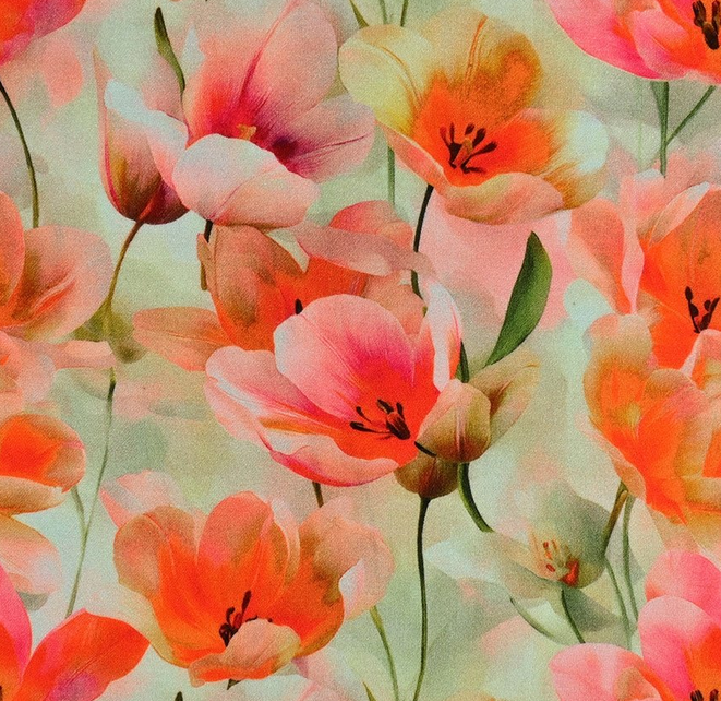 Viscose oranje bloemen