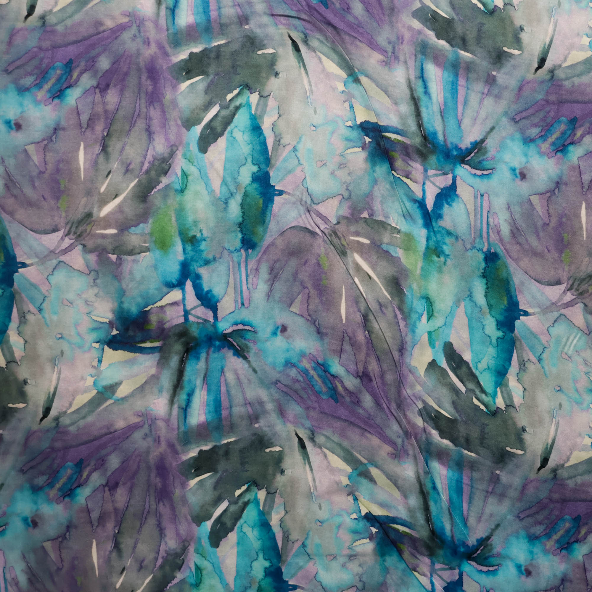 Viscose zijde blauw/paars met bladeren