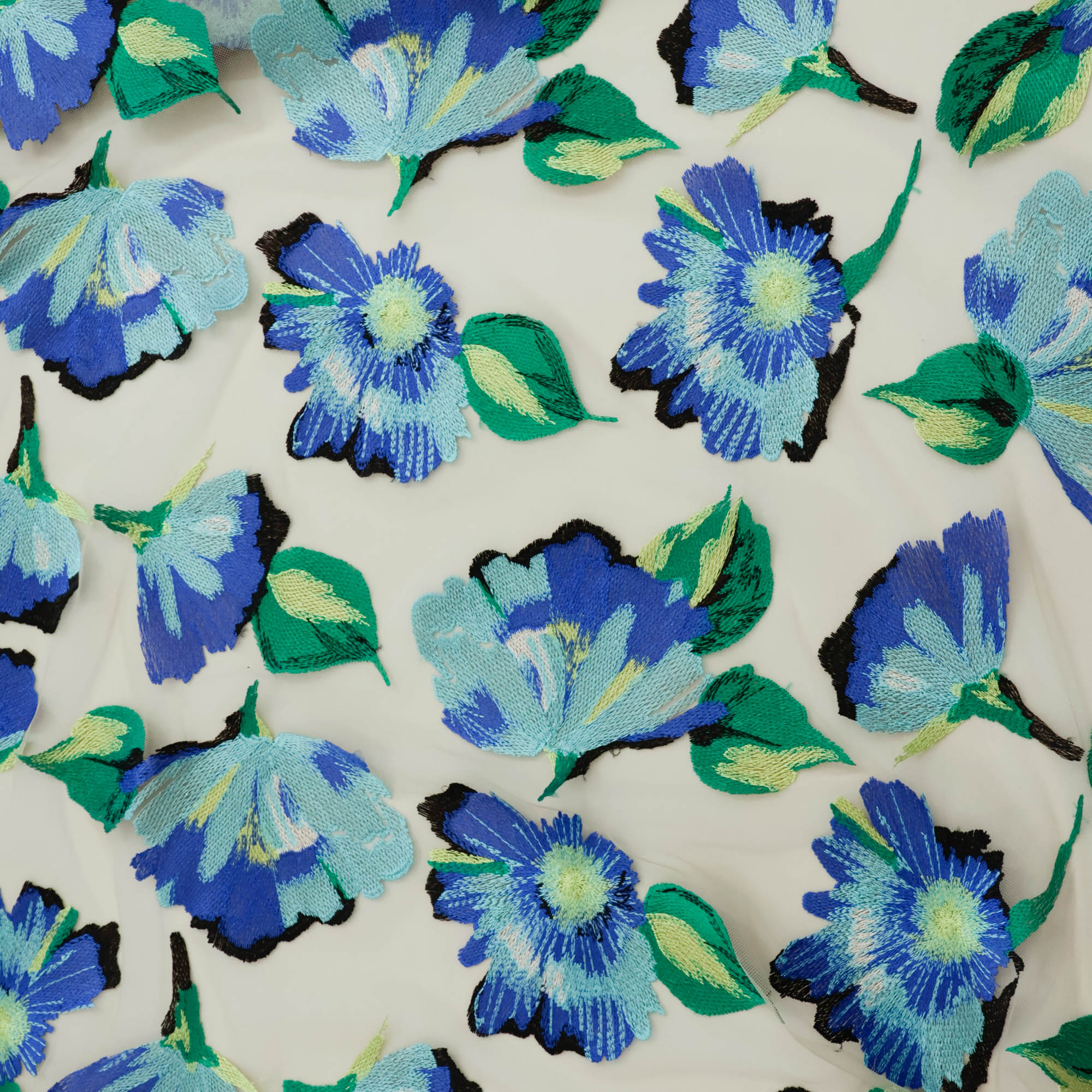 Tule kant broderie met grote bloemen in turquoise - Lorré