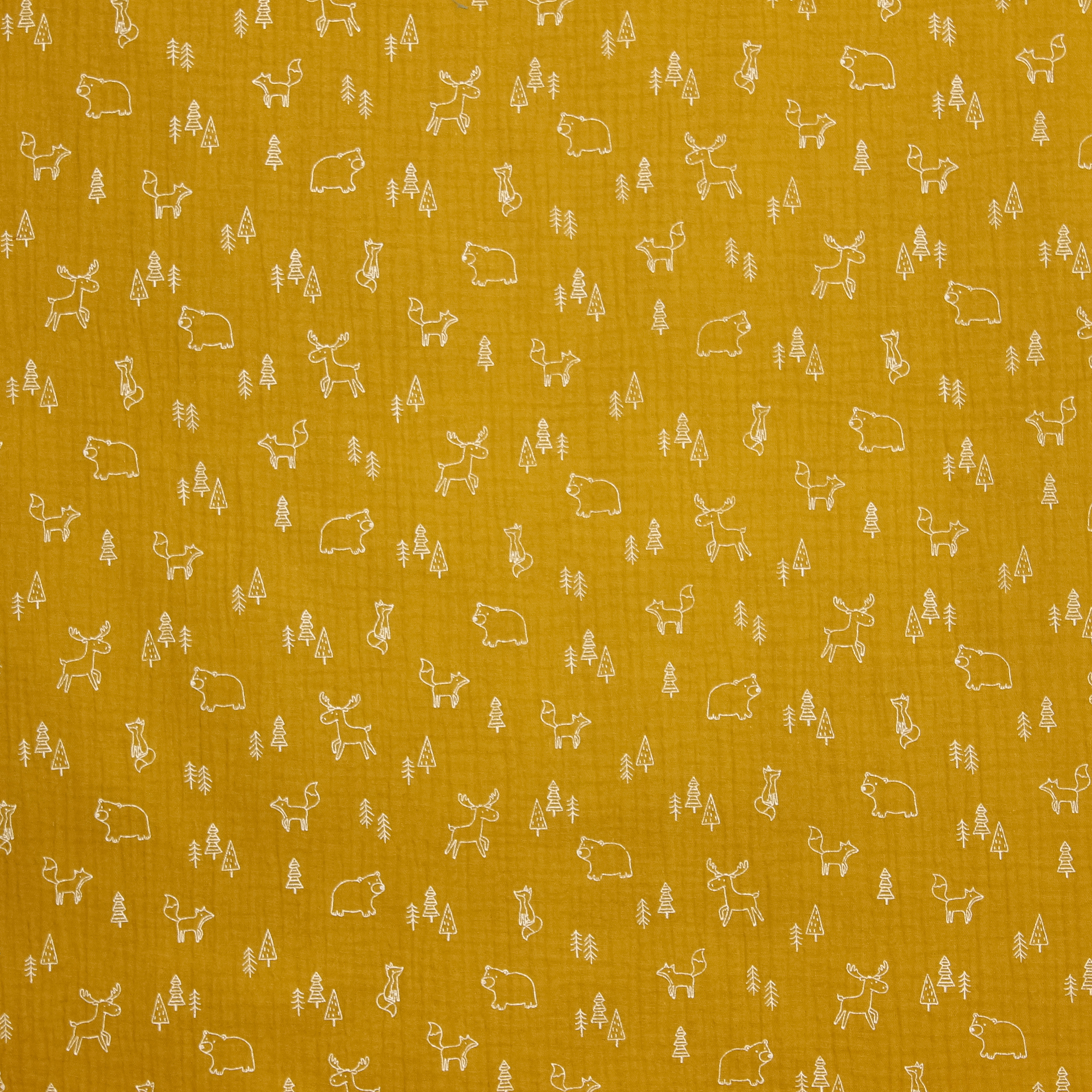 Oker double gauze met dieren van Poppy