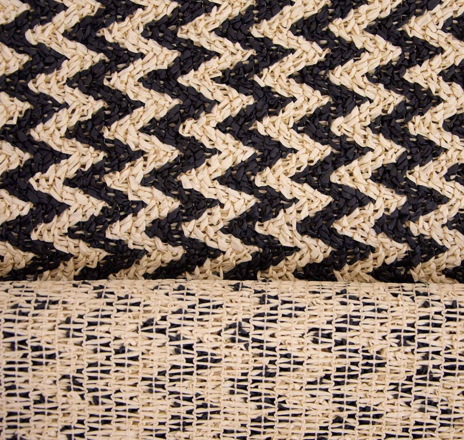 New!Gebreide stof van raffiapapier zwart patroon - Katia