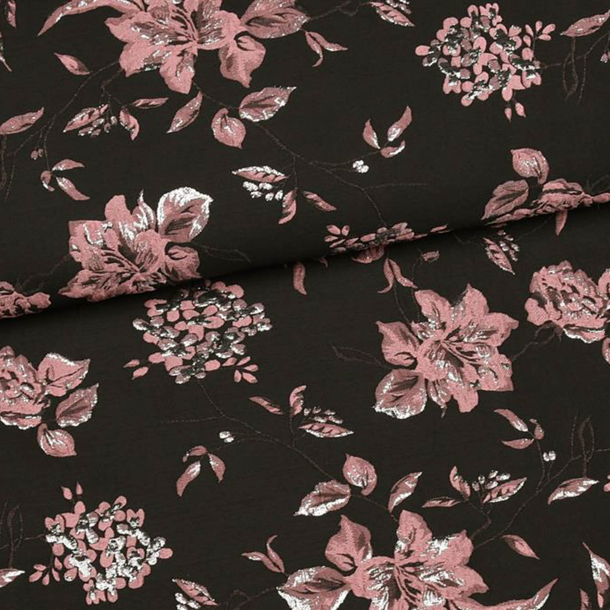 Jacquard zwart met roos bloemenpatroon en lurexdraad - Knipmode 11/2025