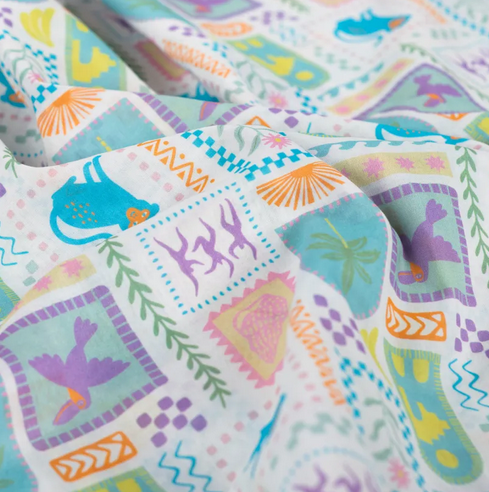 Katoen voile met vakantiepatroon - Qjutie & the Qjutest