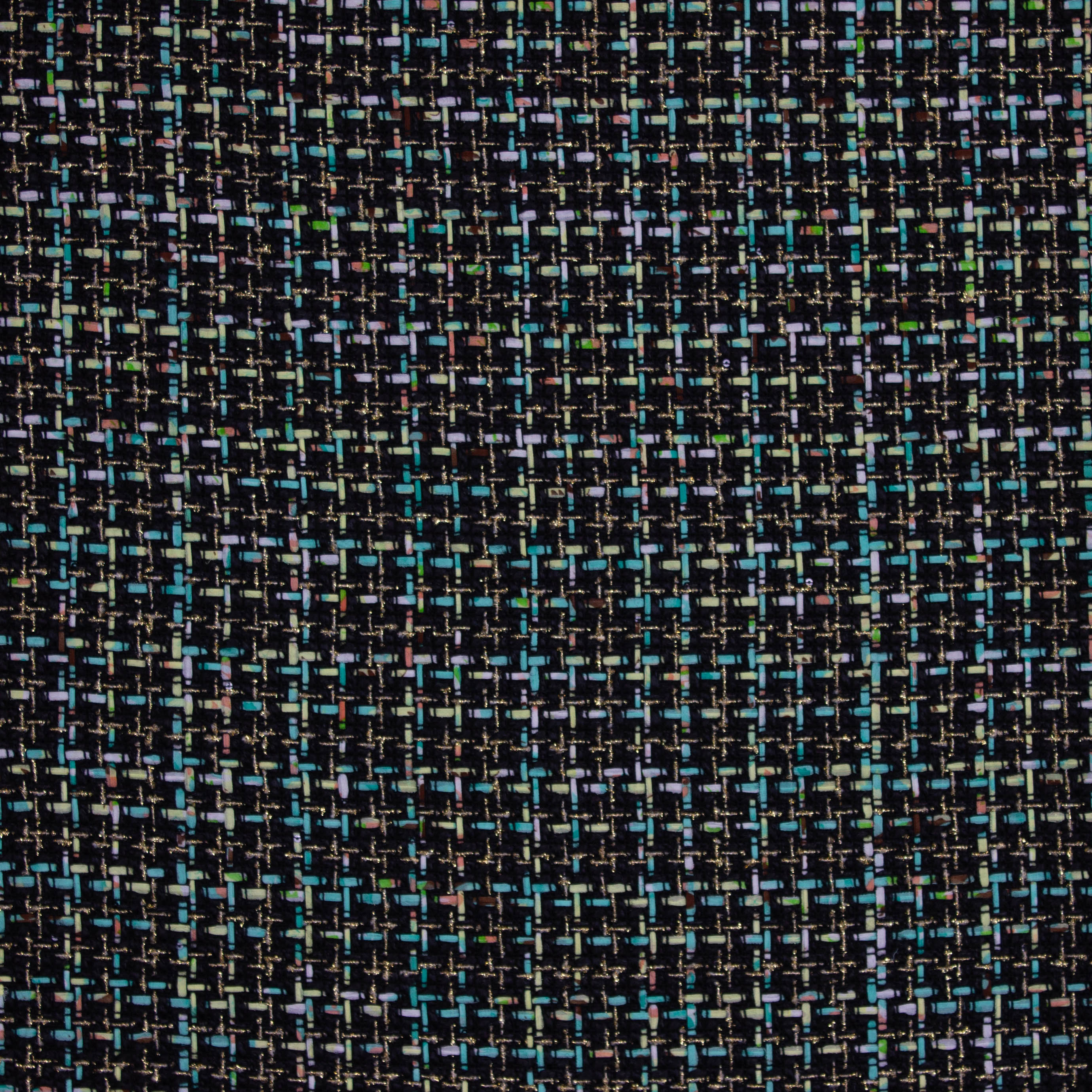 Chanelstof zwart met groen, geel en goud