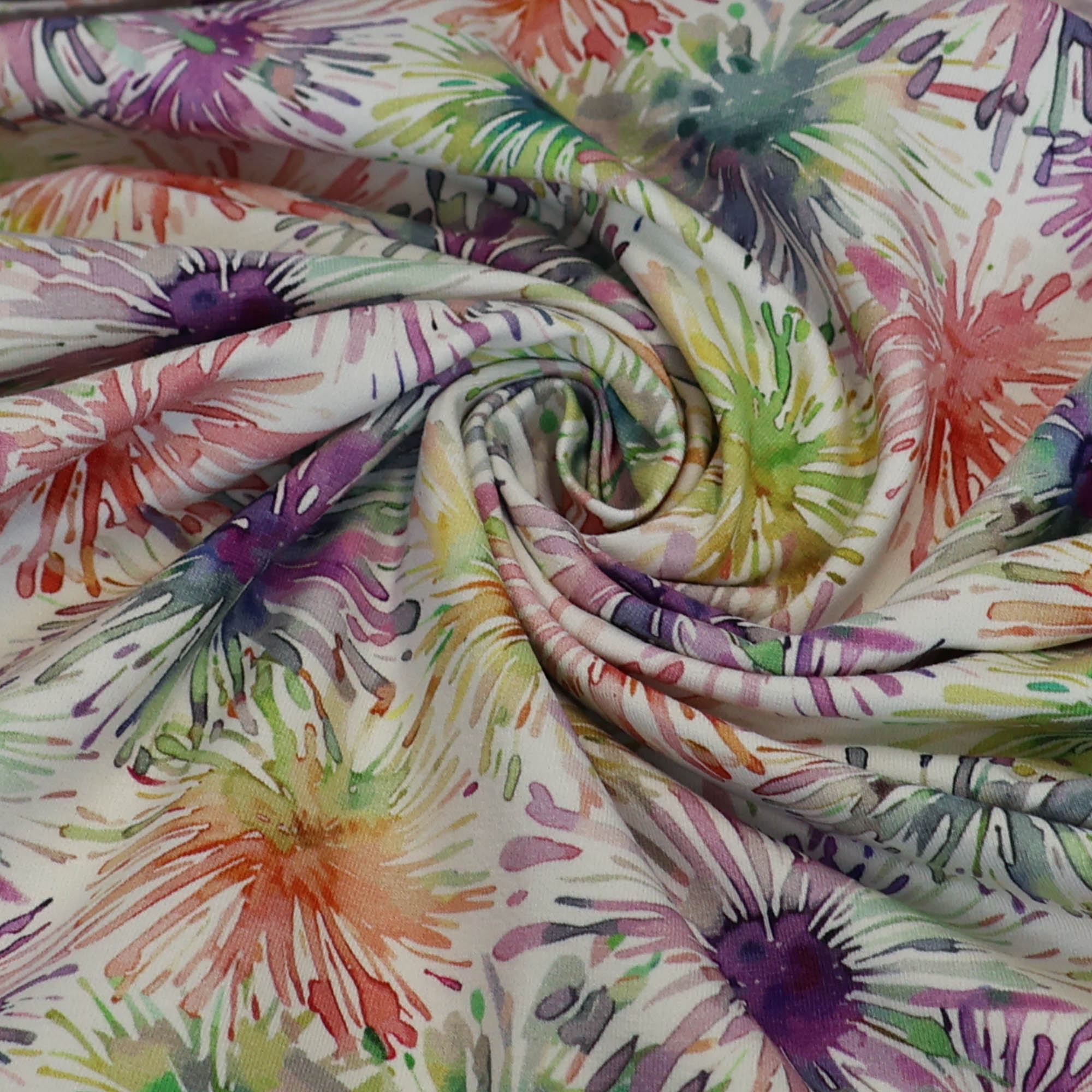 New!Katoentricot wit met waterverf patroon