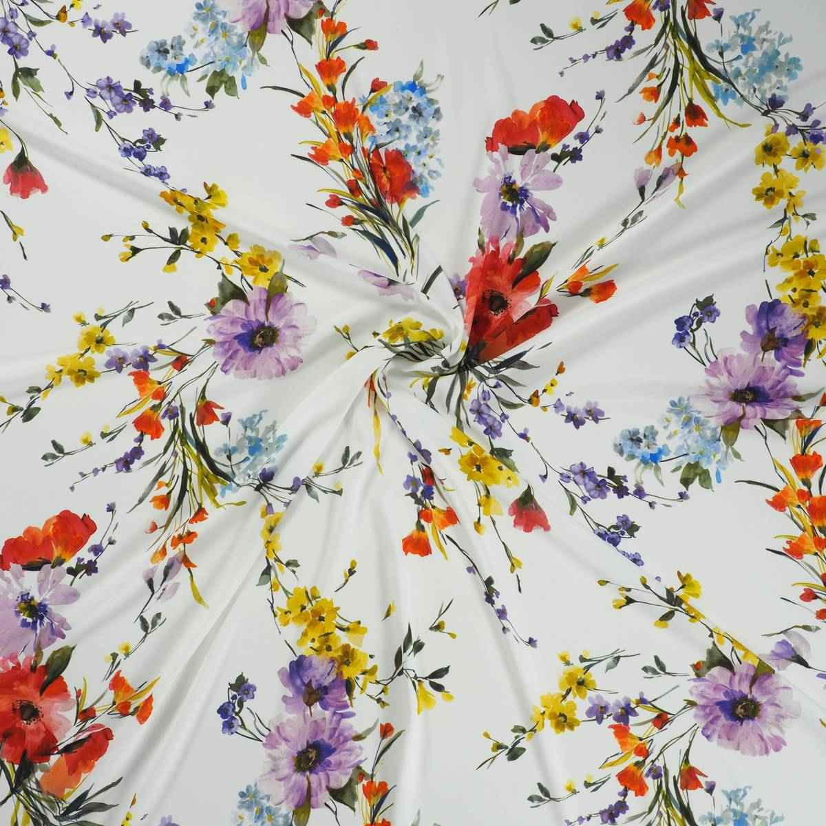 Polyester crêpe wit met bloemen - Lorré