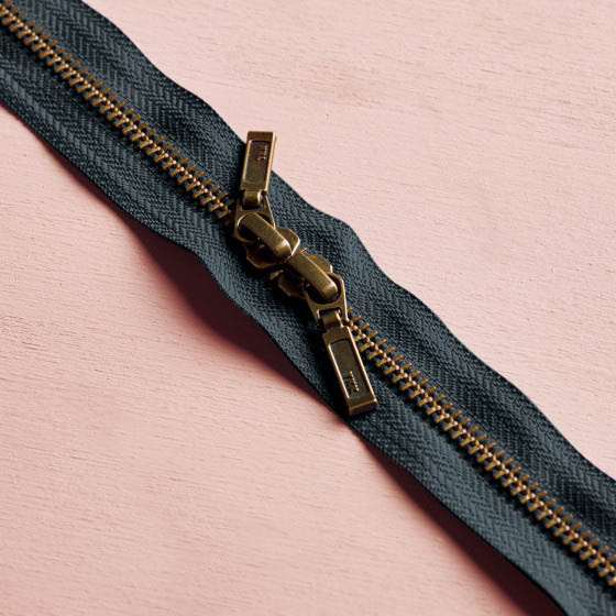 Rits met dubbele schuiver - 40 cm - brass - zwart - Atelier Brunette