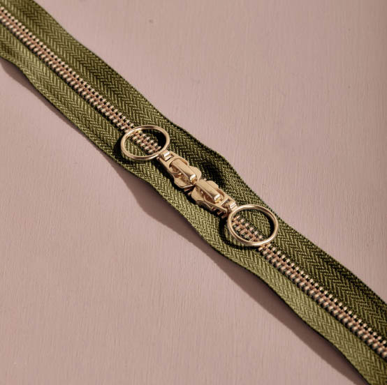 Rits met dubbele schuiver - 40 cm - brass - ivy green - Atelier Brunette