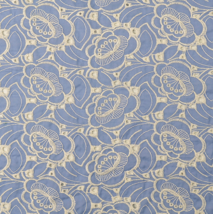 Broderie lichtblauw met bloemen