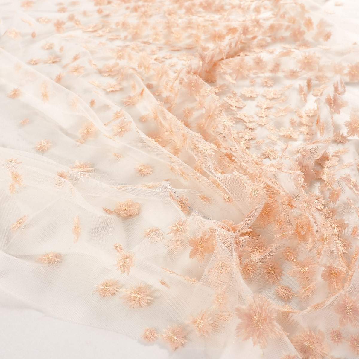 Tule geborduurd met 3d bloemen koraal - Lorré